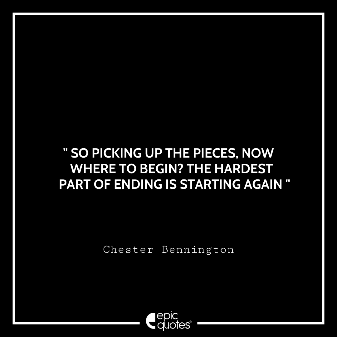 2. So picking up the pieces, now where to begin? The hardest part of ending is starting again. -Chester Bennington