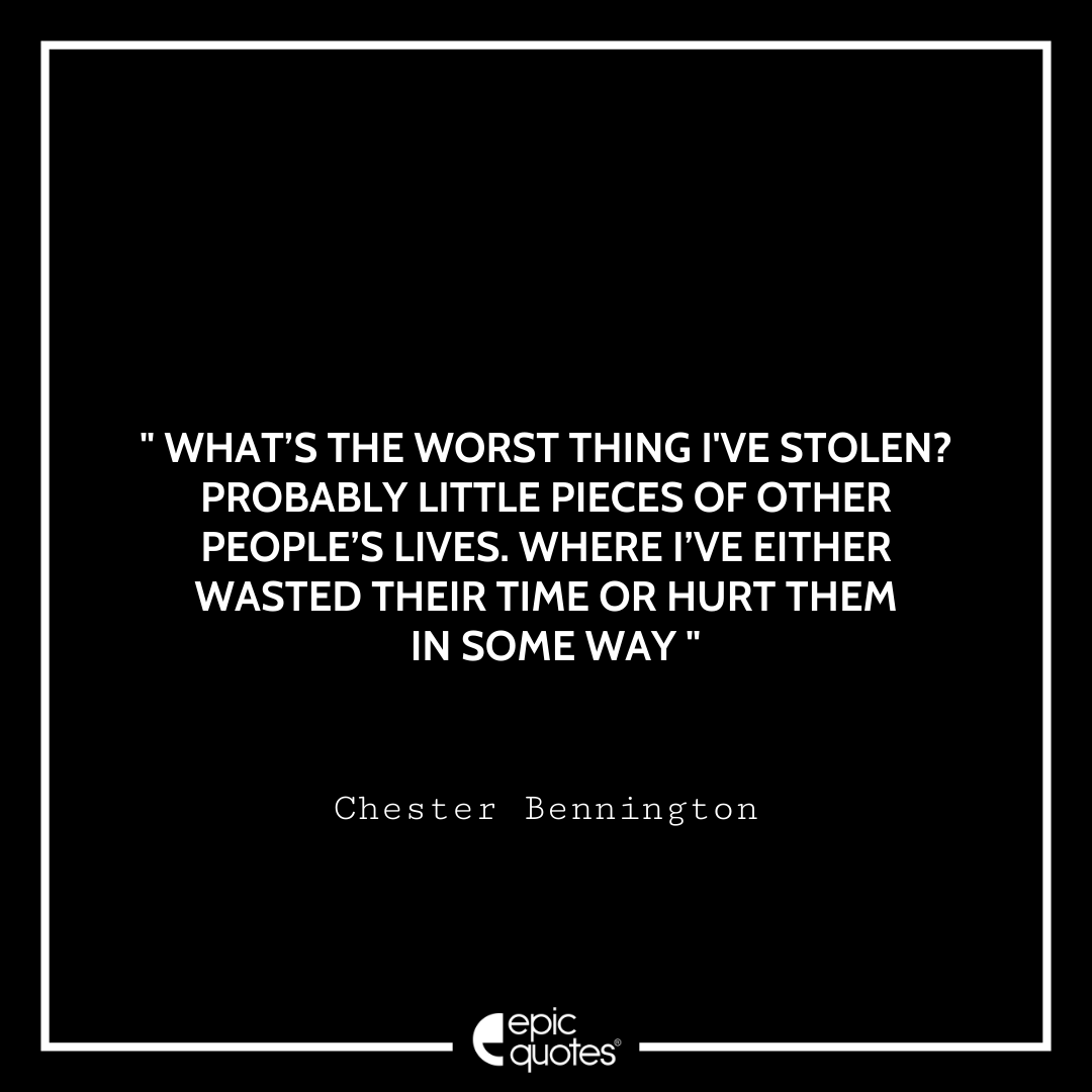 12 . What’s the worst thing I’ve stolen? Probably little pieces of other people’s lives. Where I’ve either wasted their time or hurt them in some way. -Chester Bennington