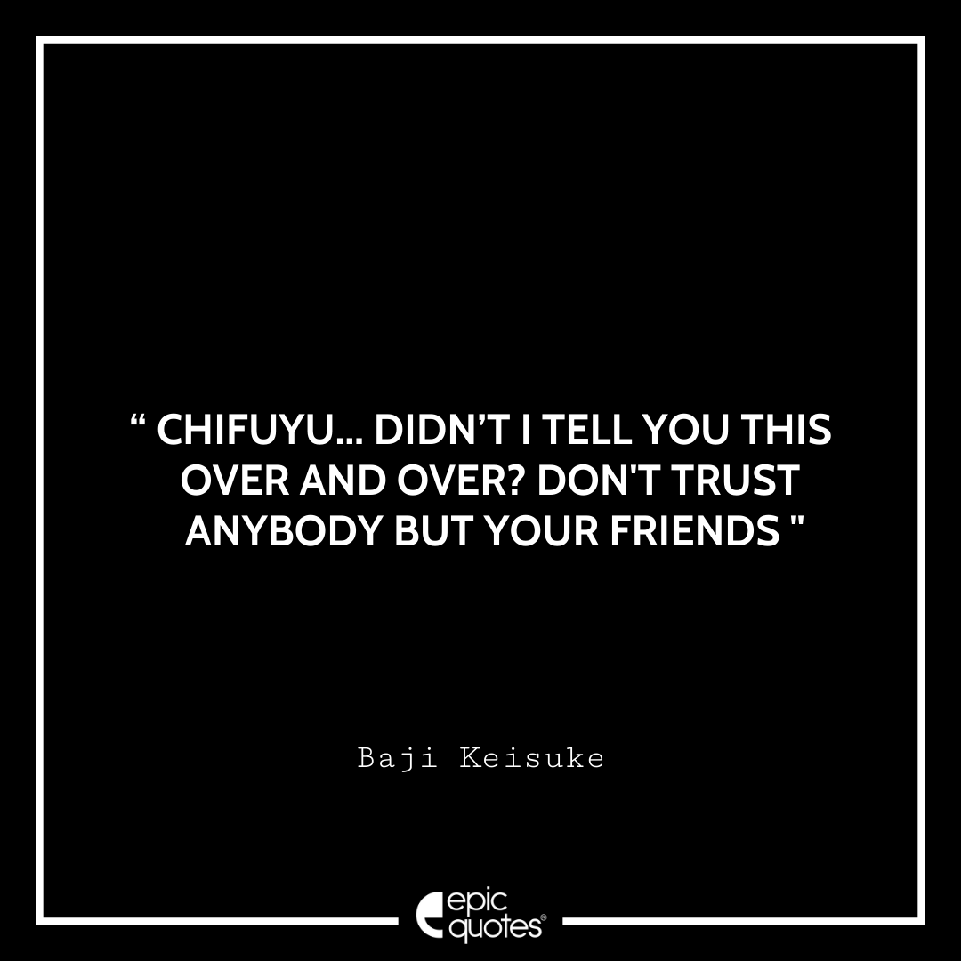 No matter what happens, the only people whom you should trust are your friends. That’s what baji kept telling Chifuyu, and he tell this to him when they meet before The Bloody Halloween, he advised Chifuyu to only trusted his real friends and by trusting Baji, Chifuyu was actually doing the same