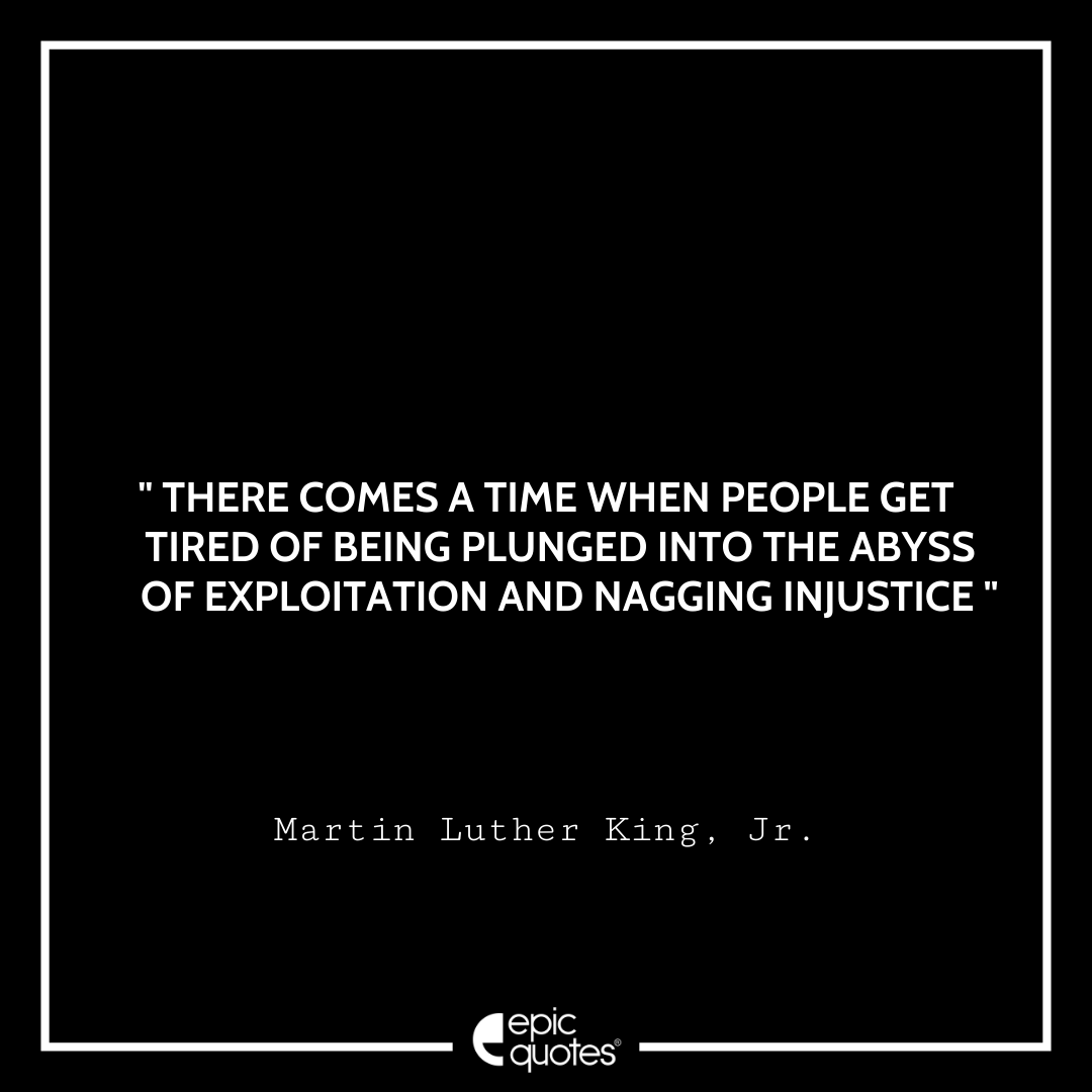 1. There comes a time when people get tired of being plunged into the abyss of exploitation and nagging injustice. —Martin Luther King, Jr.