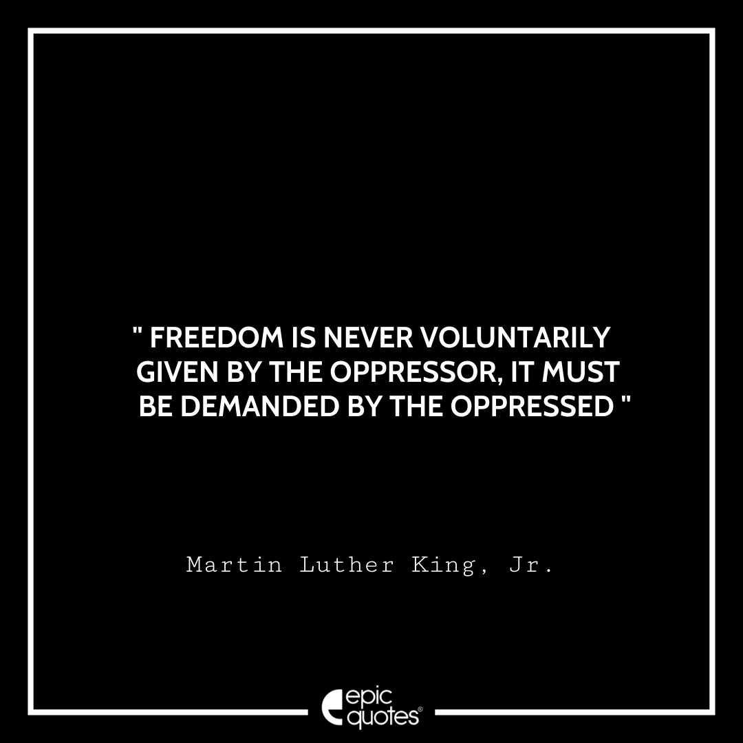 4. Freedom is never voluntarily given by the oppressor; it must be demanded by the oppressed. -Martin Luther King Jr.