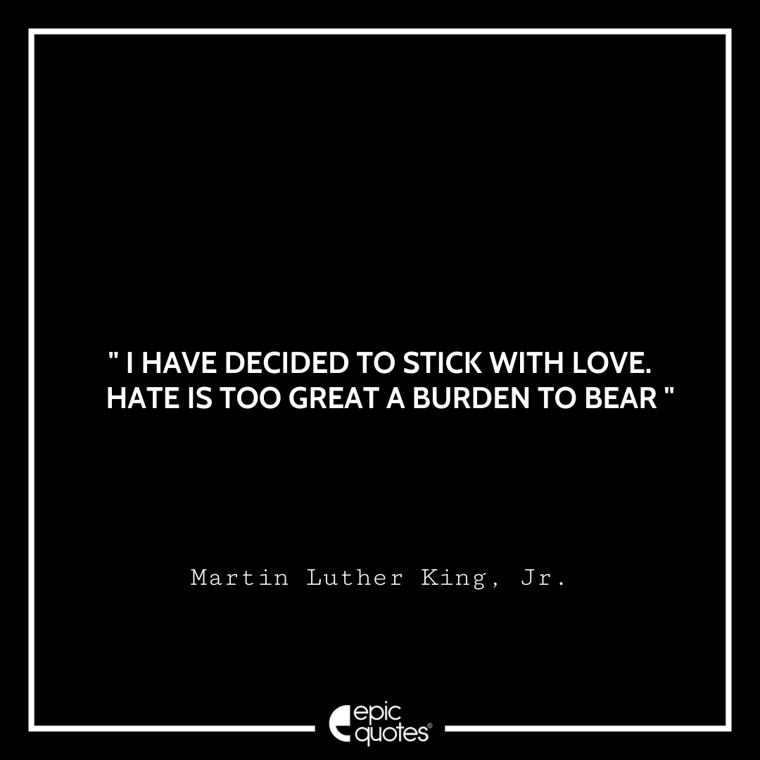6 I have decided to stick with love. Hate is too great a burden to bear. -Martin Luther King Jr.