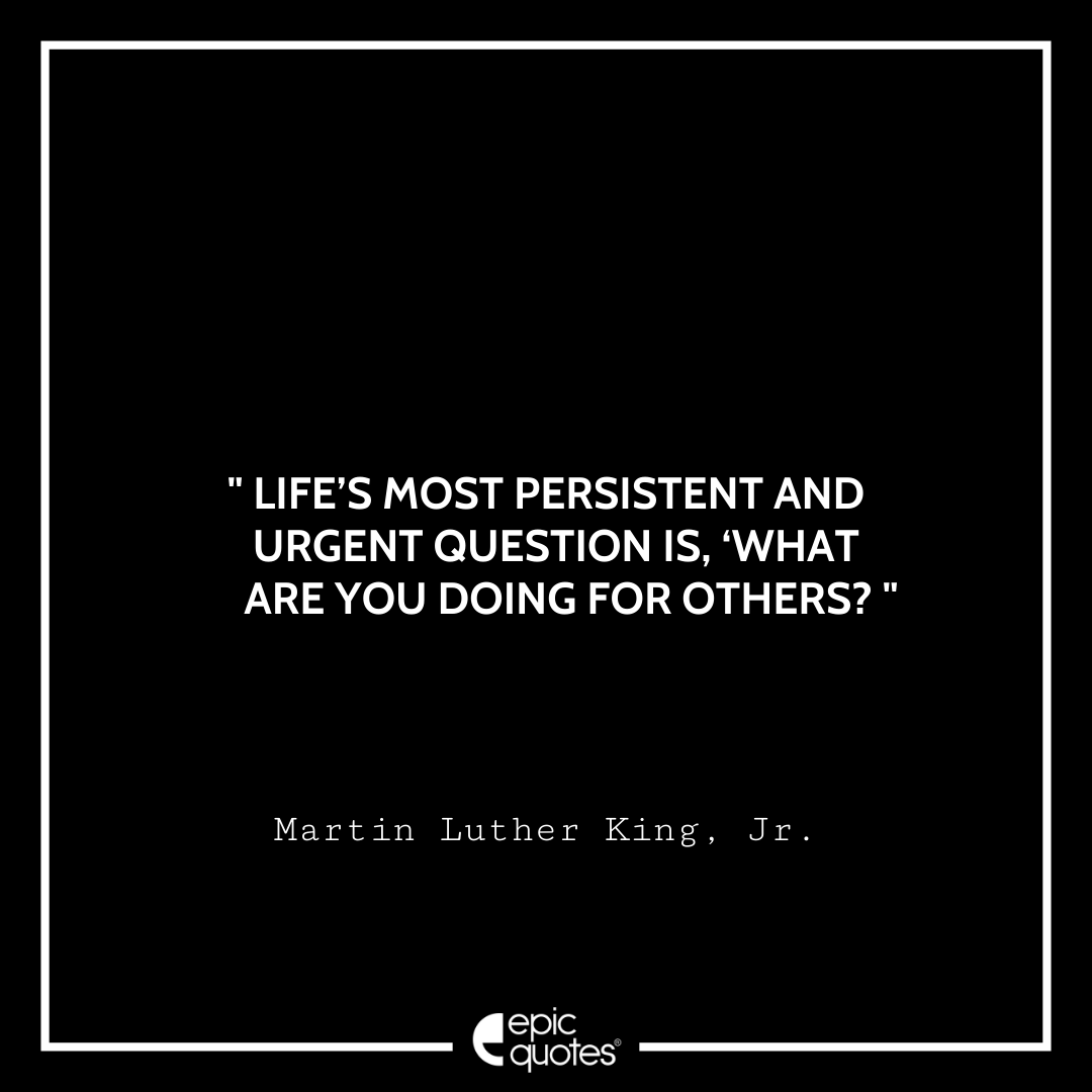 8. Life’s most persistent and urgent question is, ‘What are you doing for others? -Martin Luther King Jr.