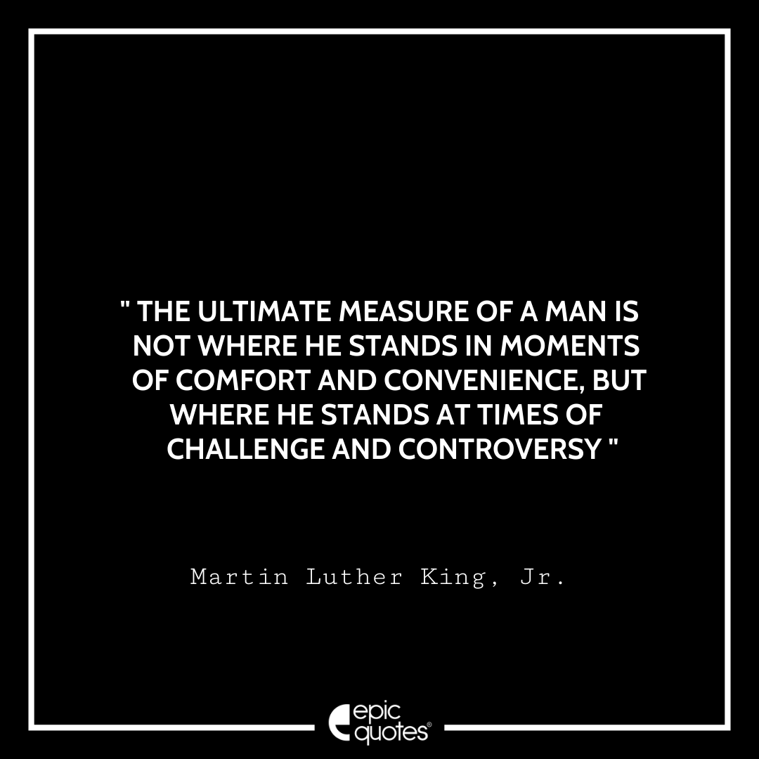 10. The ultimate measure of a man is not where he stands in moments of comfort and convenience, but where he stands at times of challenge and controversy. -Martin Luther King Jr.