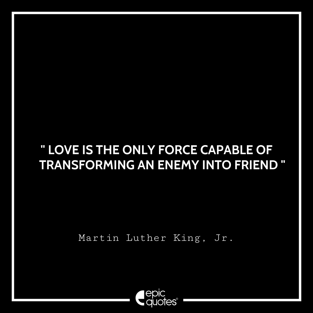 11. Love is the only force capable of transforming an enemy into friend. -Martin Luther King Jr.