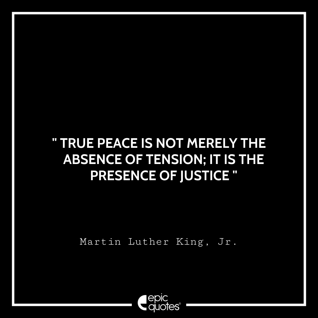 13. True peace is not merely the absence of tension; it is the presence of justice. -Martin Luther King Jr.