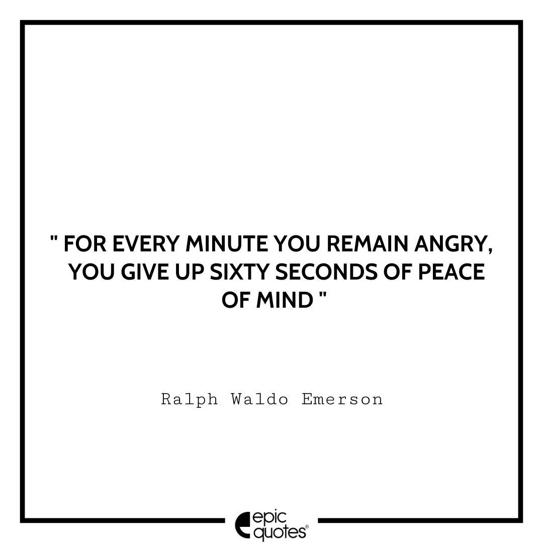 2. For every minute you remain angry, you give up sixty seconds of peace of mind. -Ralph Waldo Emerson