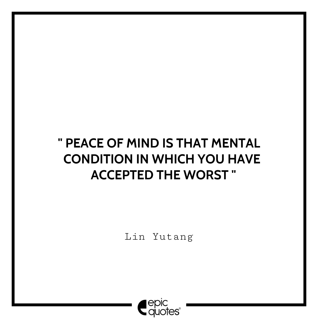 12. Peace of mind is that mental condition in which you have accepted the worst. -Lin Yutang