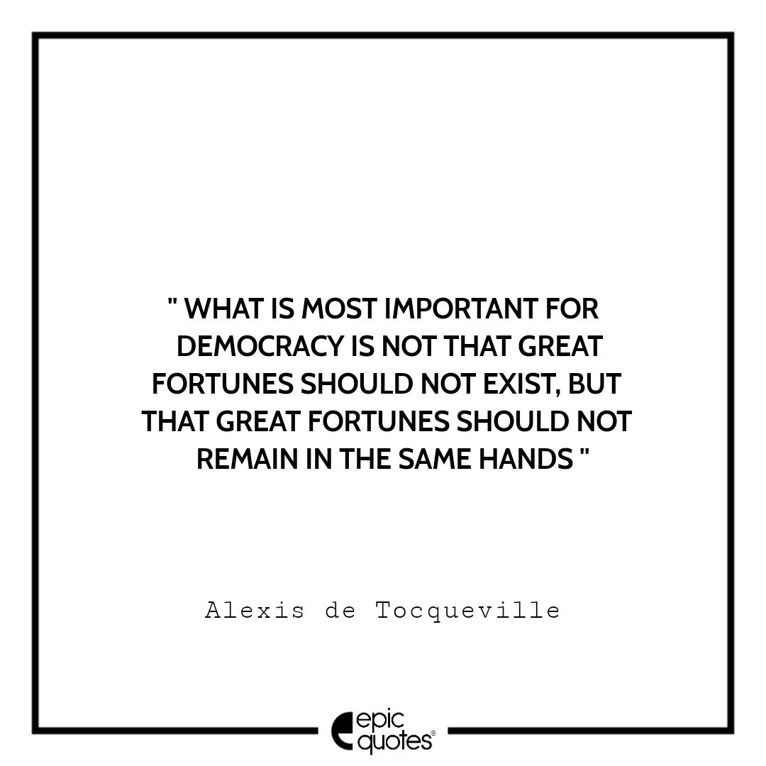 6. What is most important for democracy is not that great fortunes should not exist, but that great fortunes should not remain in the same hands. Alexis de Tocqueville
