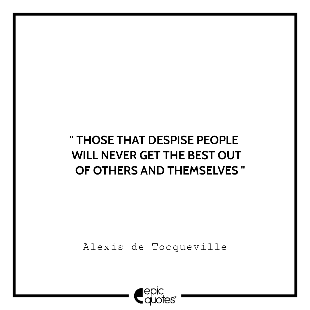 7 Those that despise people will never get the best out of others and themselves. -Alexis de Tocqueville