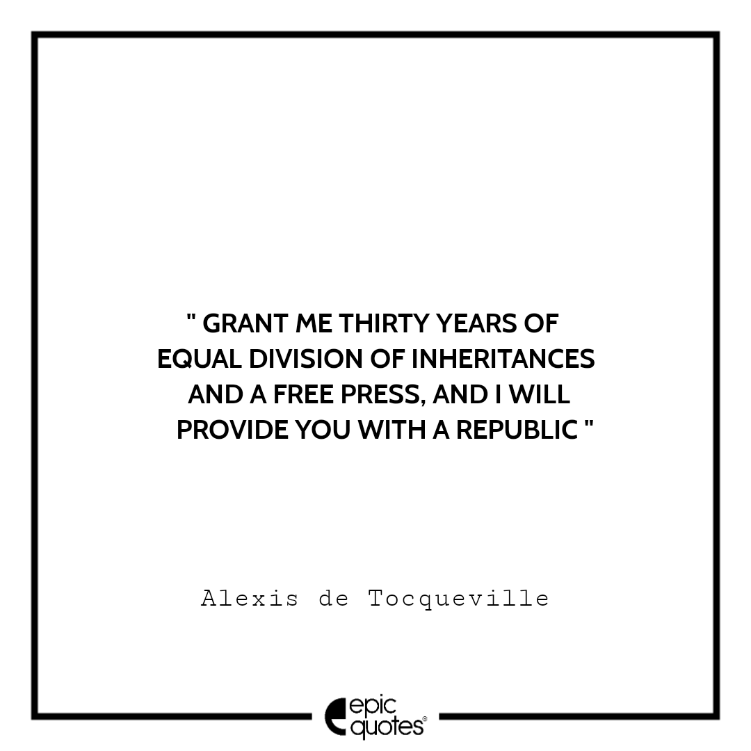 8. Grant me thirty years of equal division of inheritances and a free press, and I will provide you with a republic. -Alexis de Tocqueville