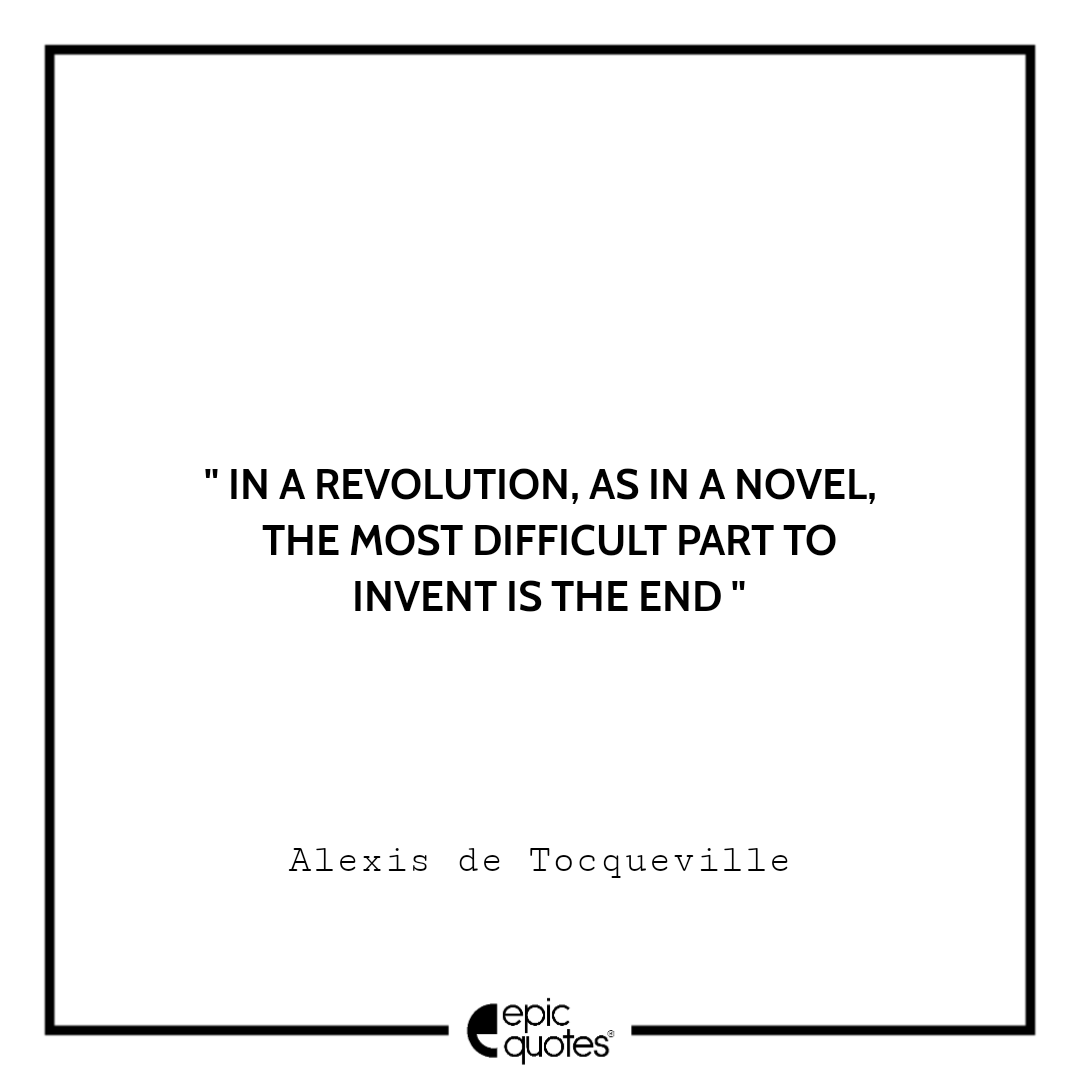11. In a revolution, as in a novel, the most difficult part to invent is the end. -Alexis de Tocqueville