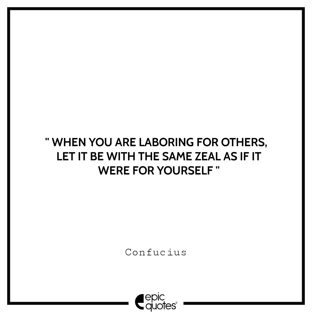 14 When you are laboring for others, let it be with the same zeal as if it were for yourself.-Confucius