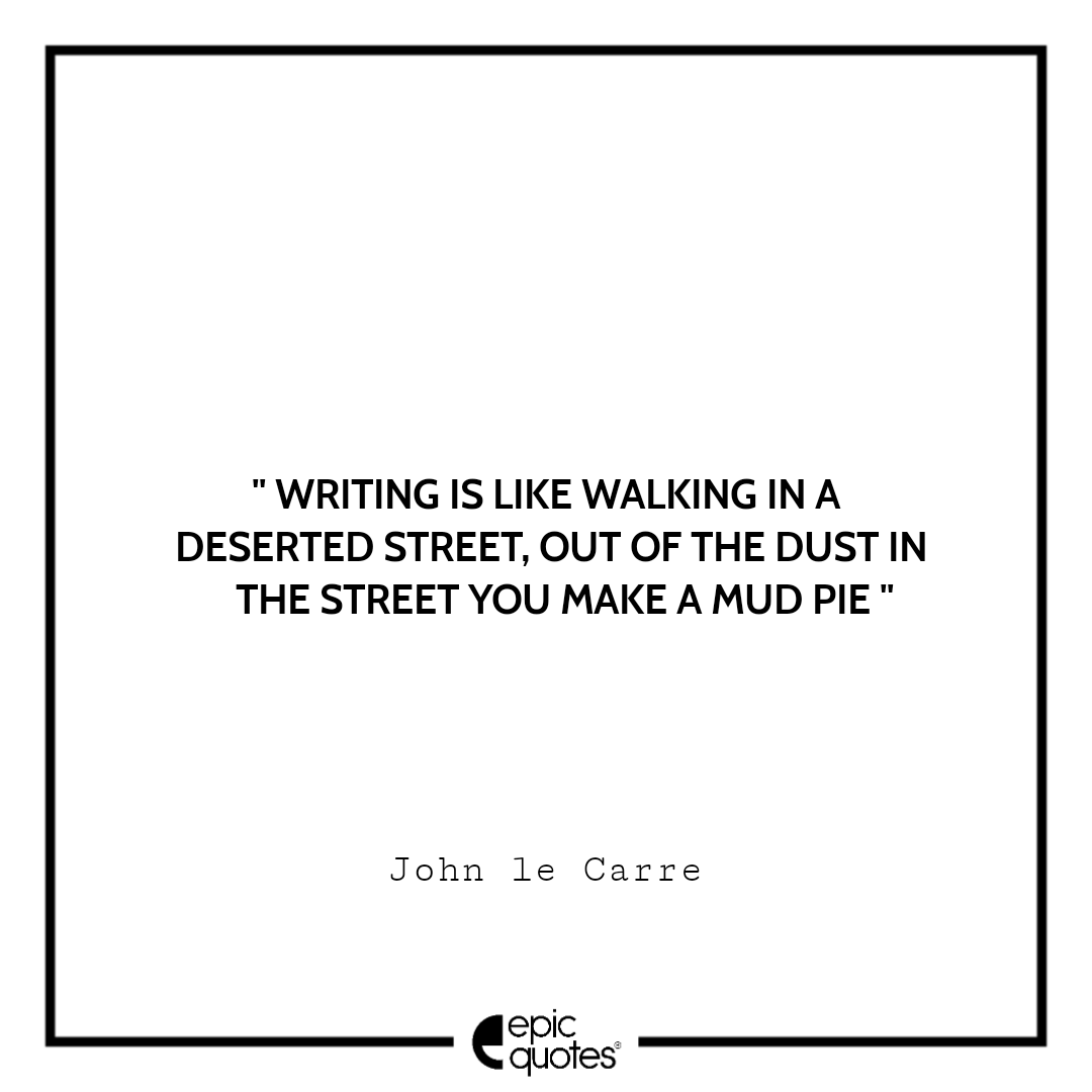 2 Writing is like walking in a deserted street, Out of the dust in the street you make a mud pie. -John le Carre