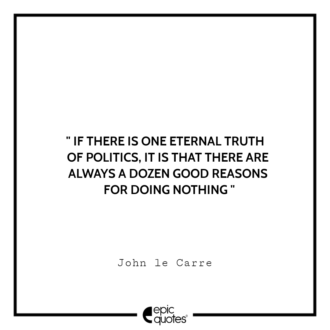 4 If there is one eternal truth of politics, it is that there are always a dozen good reasons for doing nothing. -John le Carre