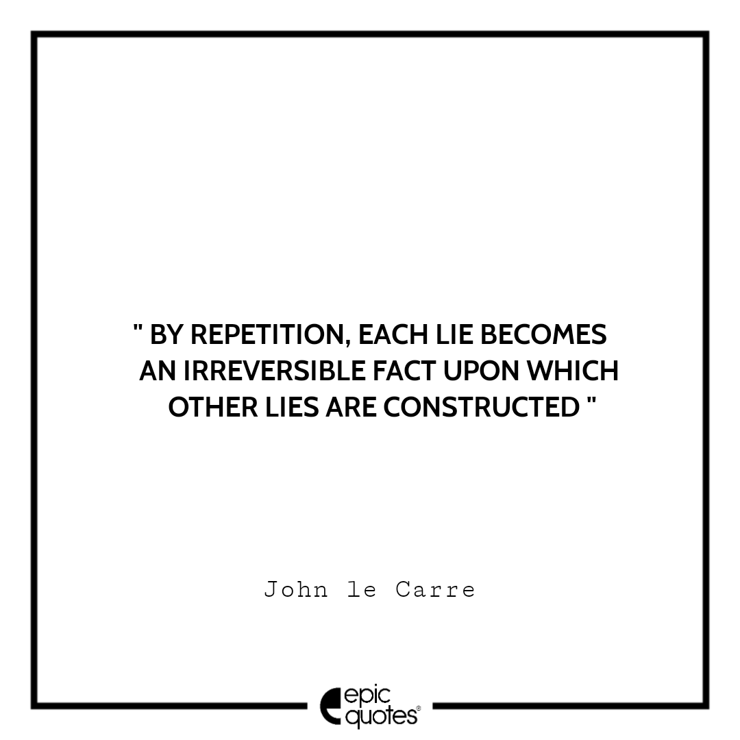 8 By repetition, each lie becomes an irreversible fact upon which other lies are constructed. -John le Carre