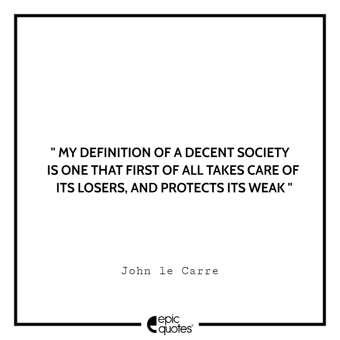 13 My definition of a decent society is one that first of all takes care of its losers, and protects its weak. -John le Carre