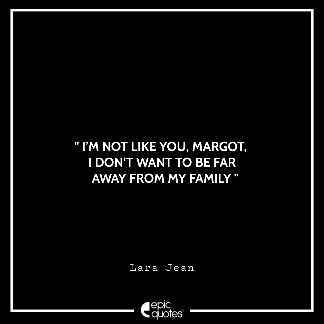 21. I’m not like you, Margot, I don’t want to be far away from my family. -Lara Jean