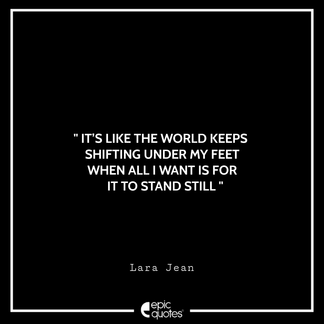 22. It’s like the world keeps shifting under my feet when all I want is for it to stand still. -Lara Jean