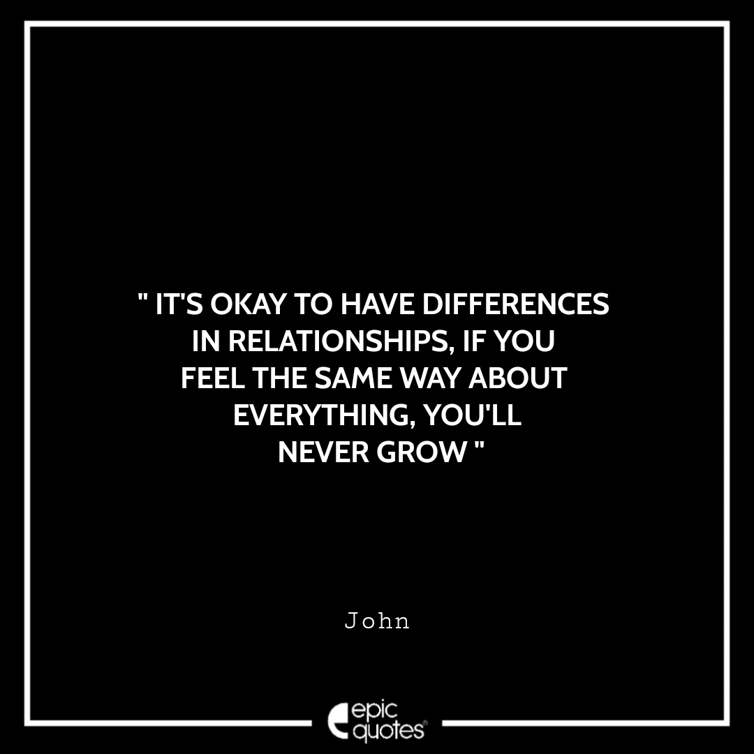 4 It’s okay to have differences in relationships, if you feel the same way about everything, you’ll never grow. -John