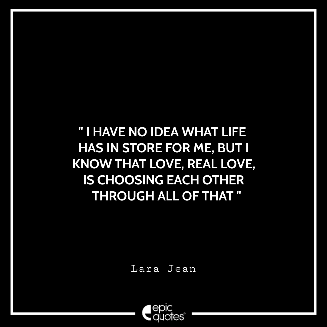 7 I have no idea what life has in store for me, but I know that love, real love, is choosing each other through all of that. -Lara Jean