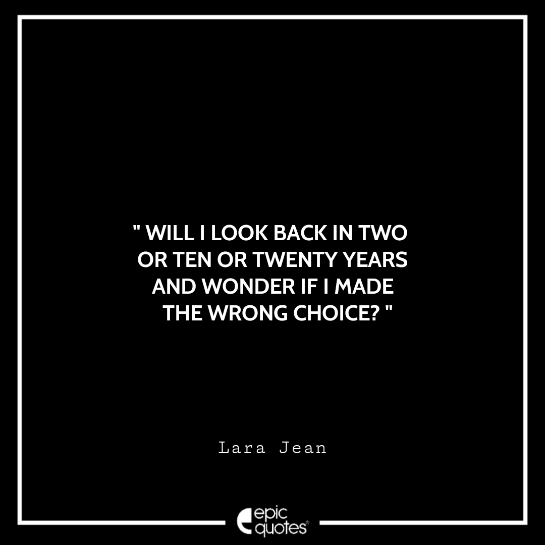 12. Will I look back in two or ten or twenty years and wonder if I made the wrong choice? -Lara Jean