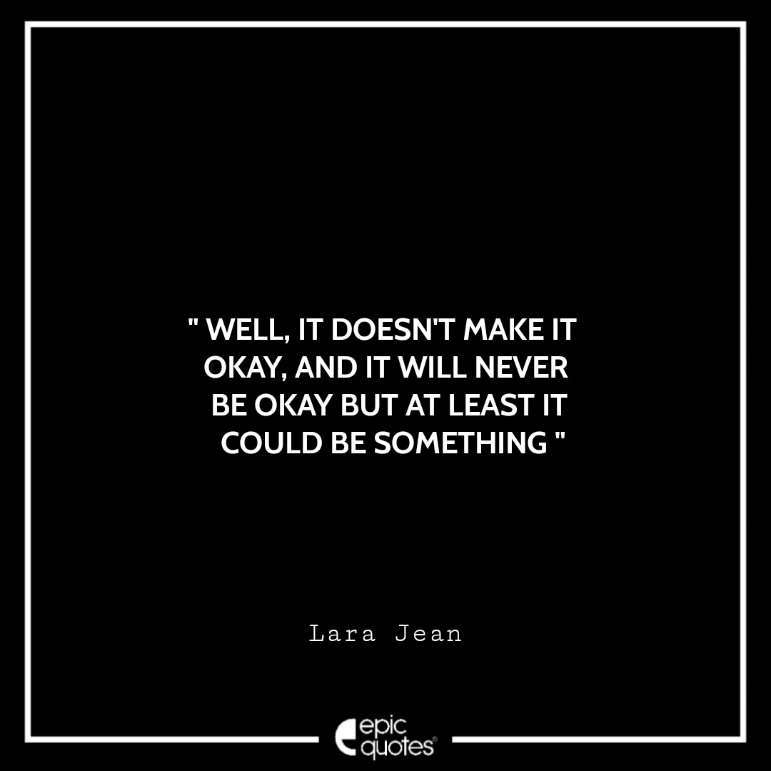 15. Well, it doesn’t make it okay, and it will never be okay but at least it could be something. -Lara Jean