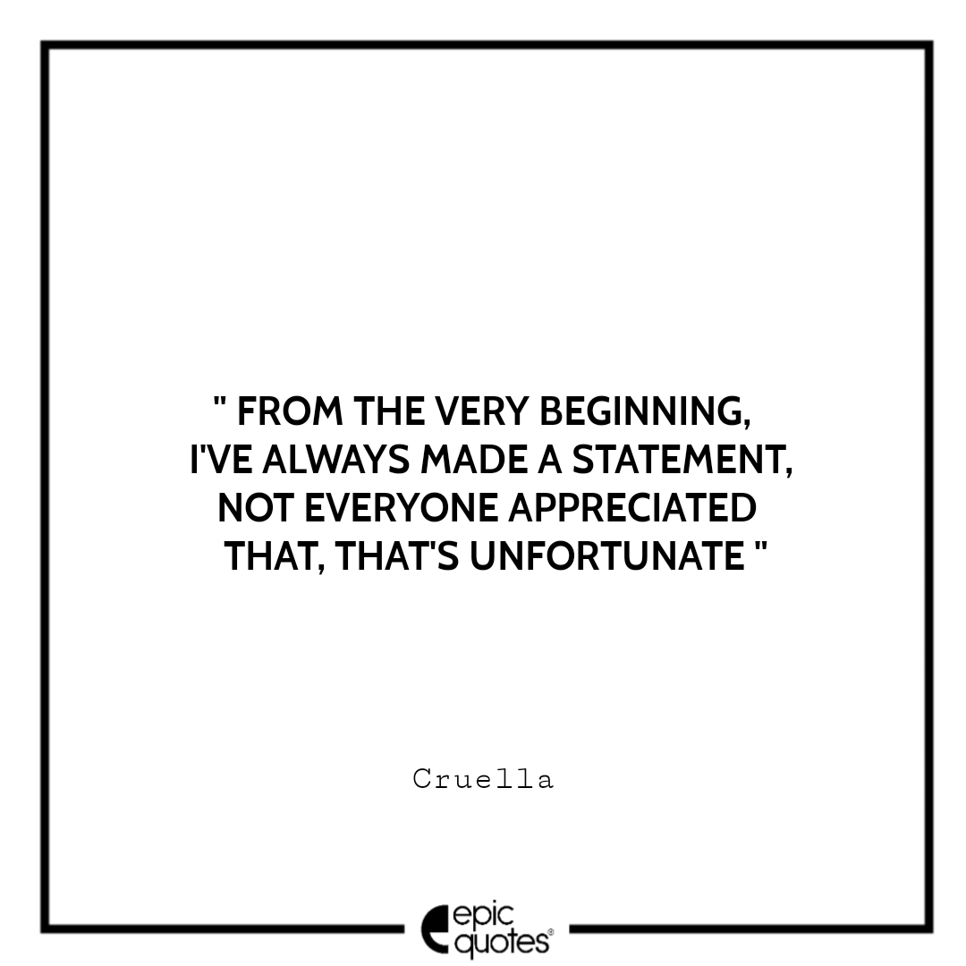 1 From the very beginning, I’ve always made a statement, Not everyone appreciated that, That’s unfortunate. -Cruella
