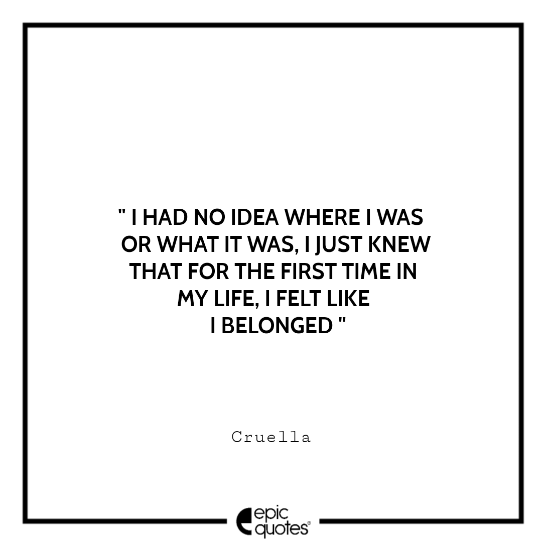 5 I had no idea where I was or what it was, I just knew that for the first time in my life, I felt like I belonged. -Cruella
