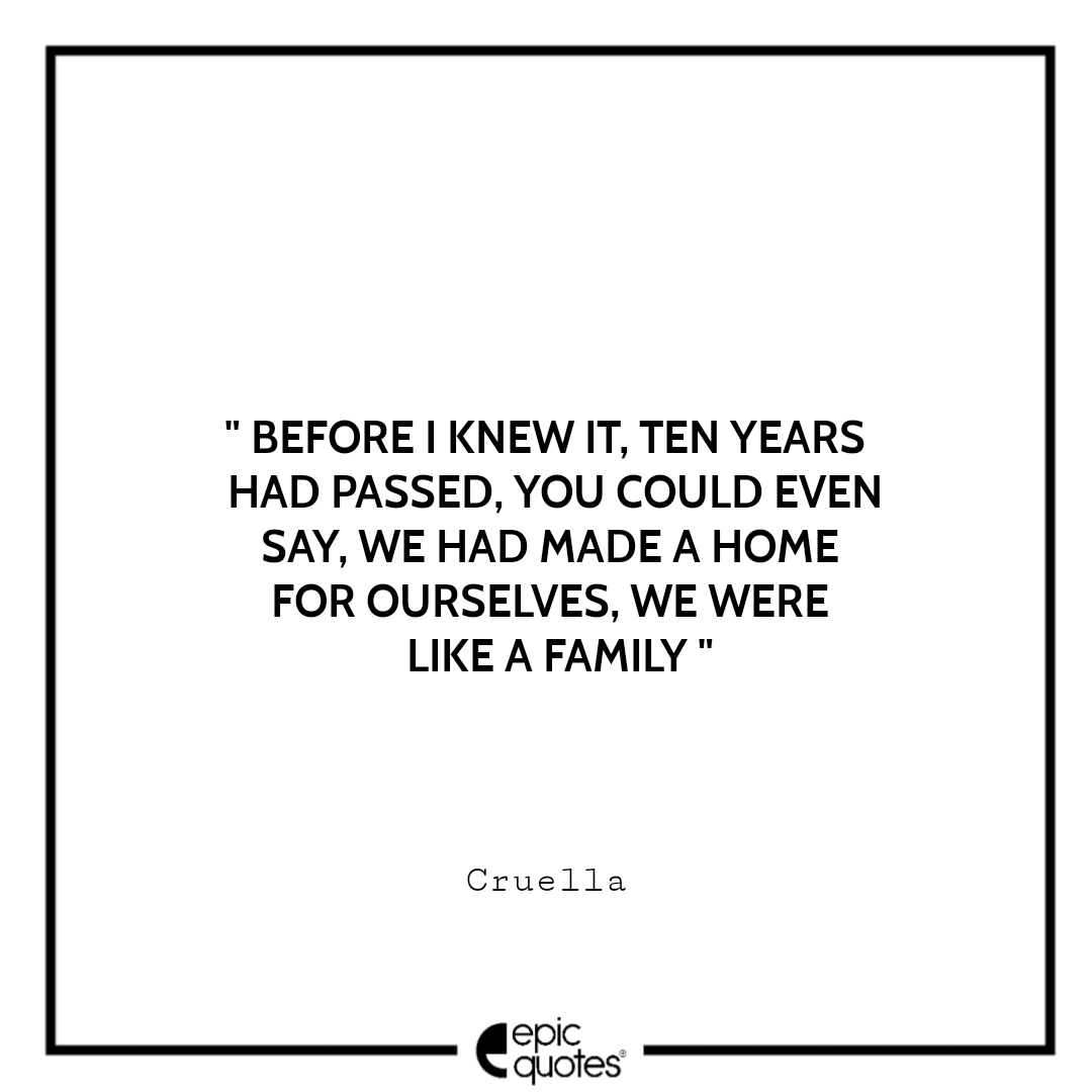 7. Before I knew it, ten years had passed, You could even say, we had made a home for ourselves, We were like a family. -Cruella