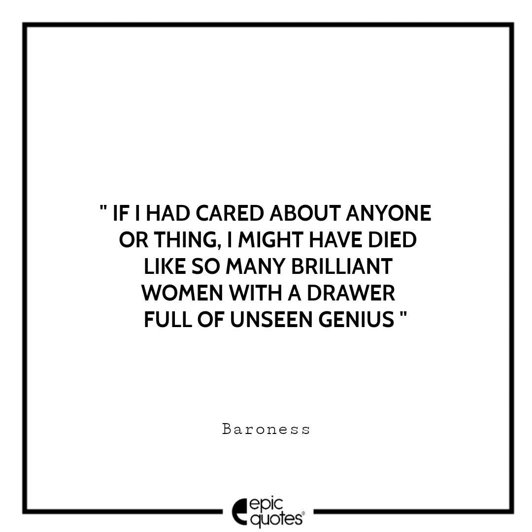 11 If I had cared about anyone or thing, I might have died like so many brilliant women with a drawer full of unseen genius. -Baroness