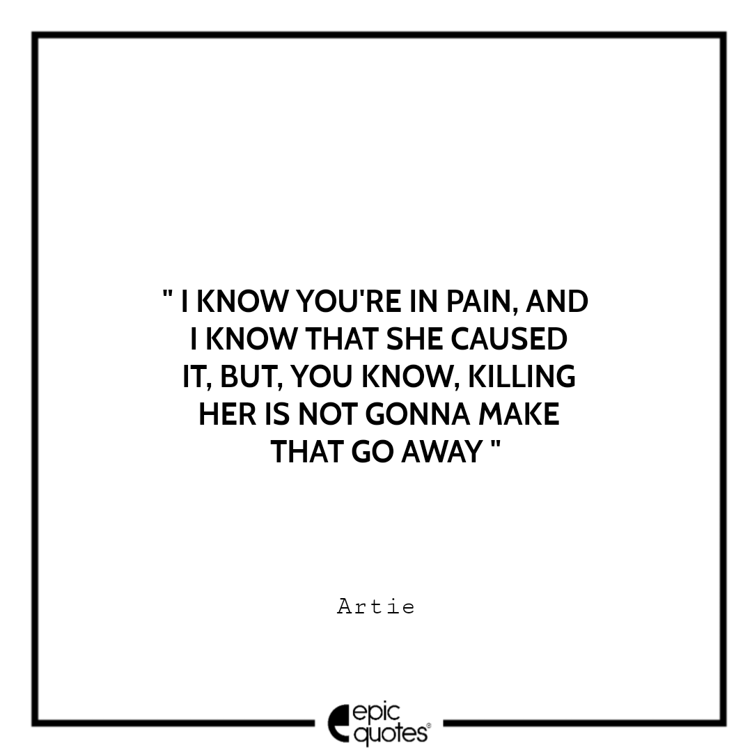 15 I know you’re in pain, And I know that she caused it, but, you know, killing her is not gonna make that go away. -Artie