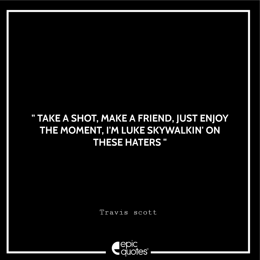 1. Take a shot, make a friend, just enjoy the moment, I’m Luke Skywalkin’ on these haters. -Travis Scott