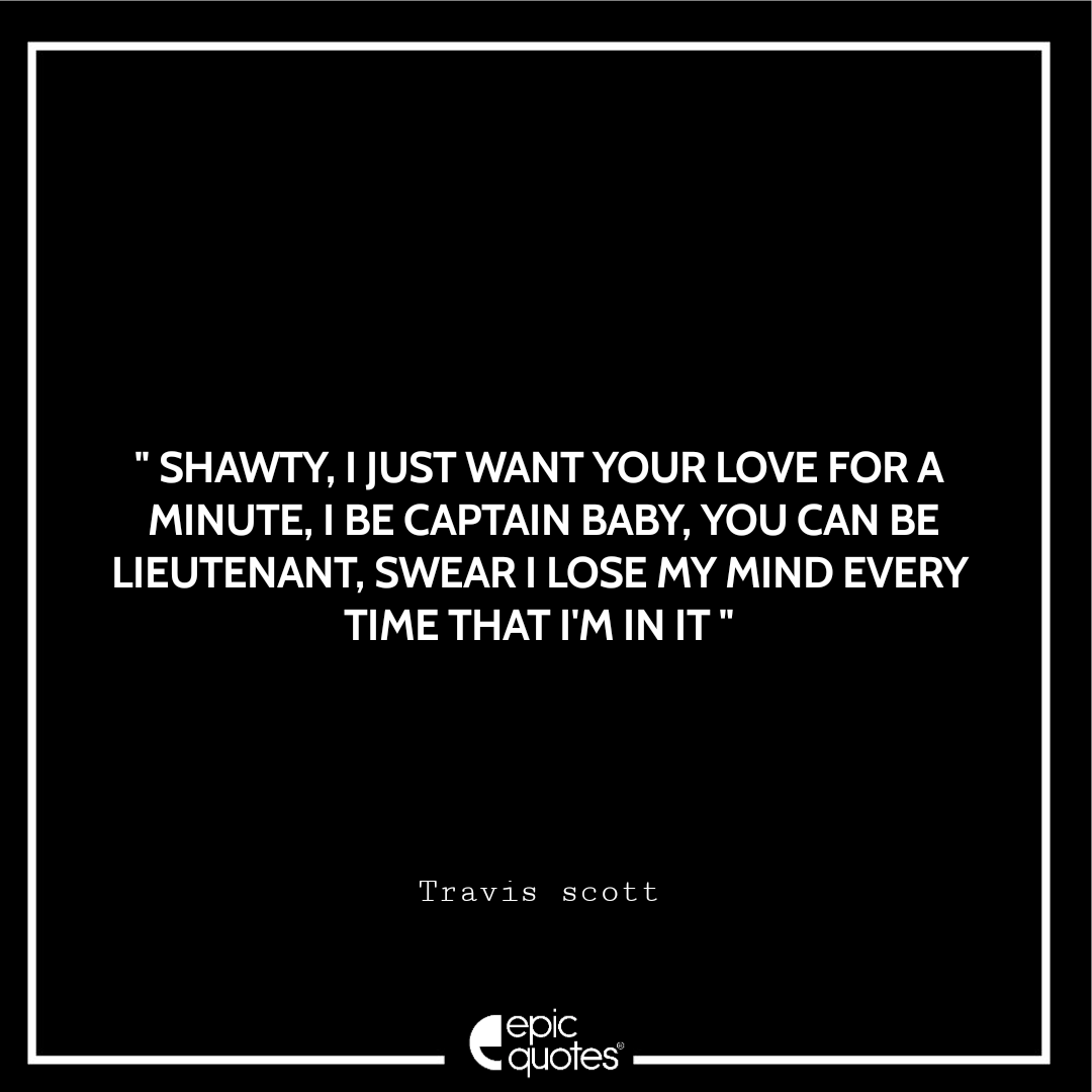 7. Shawty, I just want your love for a minute, I be captain baby, you can be lieutenant, Swear I lose my mind every time that I’m in it. -Travis Scott
