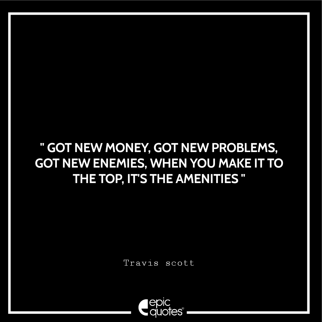 9. Got new money, got new problems, got new enemies, When you make it to the top, it’s the amenities. -Travis Scott