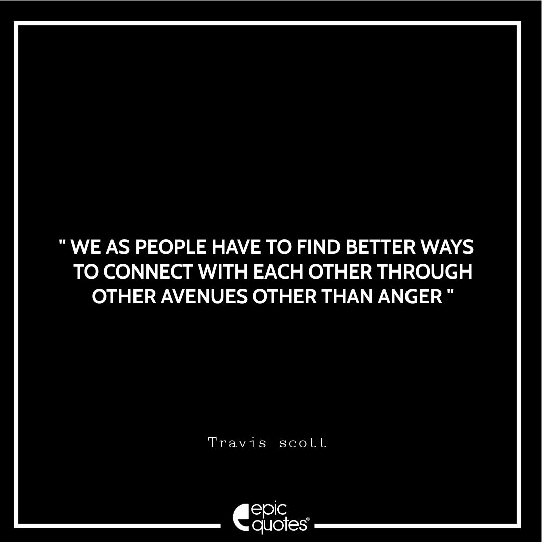 12. We as people have to find better ways to connect with each other through other avenues other than anger. -Travis Scott