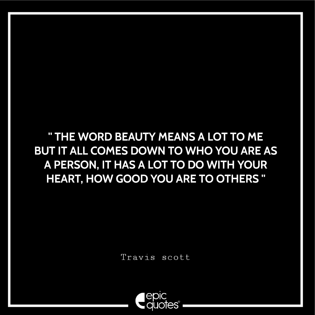 13. The word beauty means a lot to me but it all comes down to who you are as a person, It has a lot to do with your heart, how good you are to others. -Travis Scott