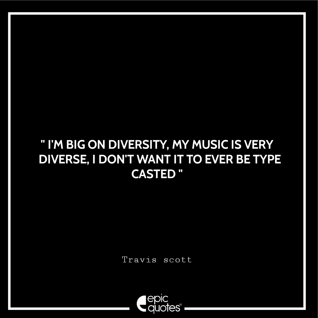 14. I’m big on diversity, My music is very diverse; I don’t want it to ever be type casted. -Travis Scott