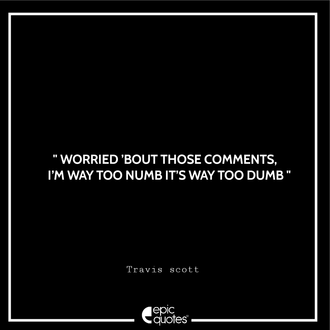 21. Worried ’bout those comments, I’m way too numb It’s way too dumb. -Travis Scott