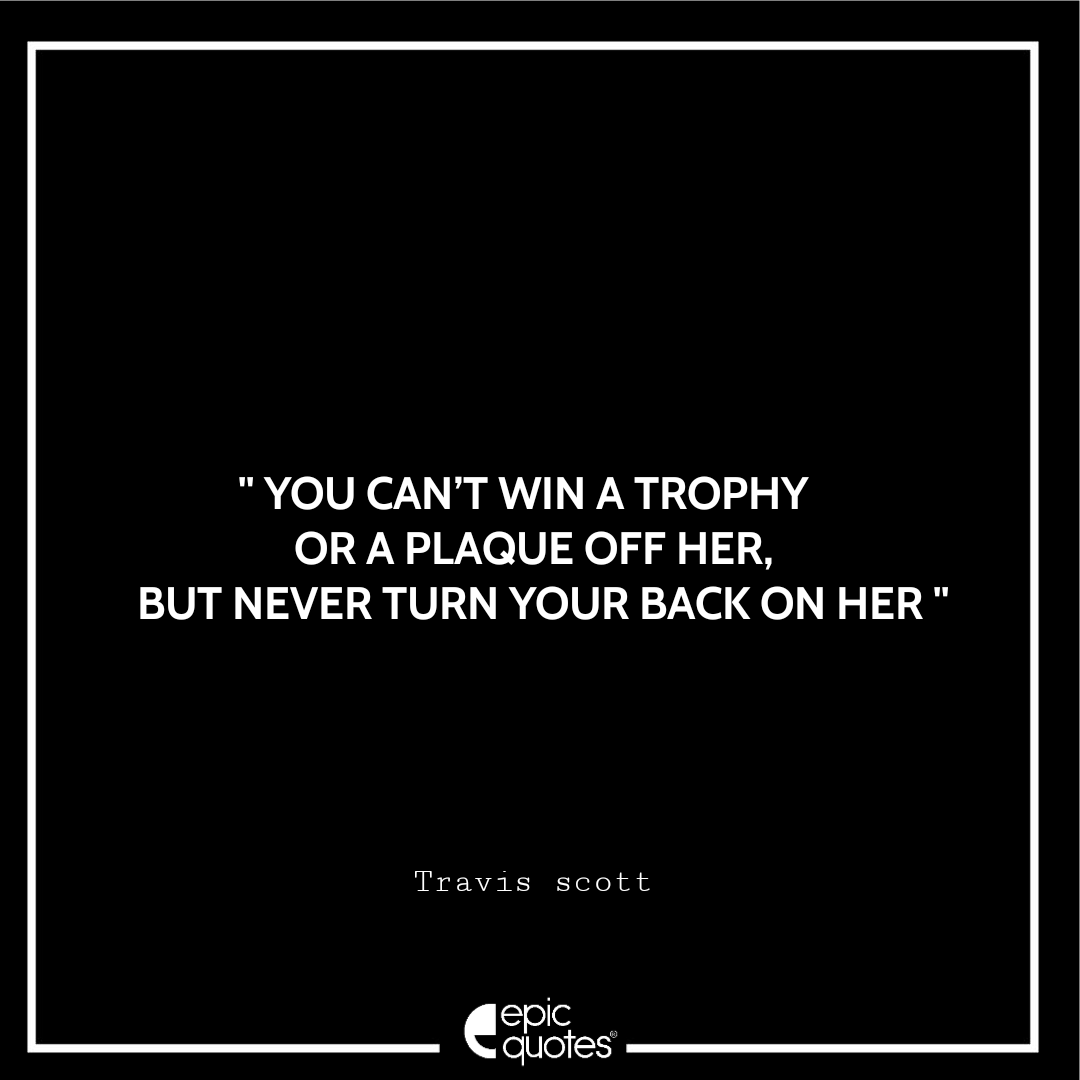 23. You can’t win a trophy or a plaque off her, But never turn your back on her. -Travis Scott