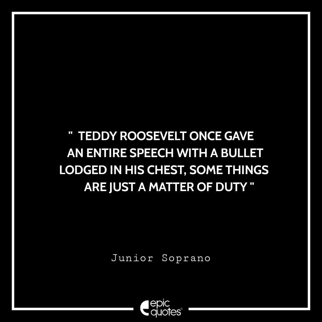 4 Teddy Roosevelt once gave an entire speech with a bullet lodged in his chest, some things are just a matter of duty. -Junior Soprano
