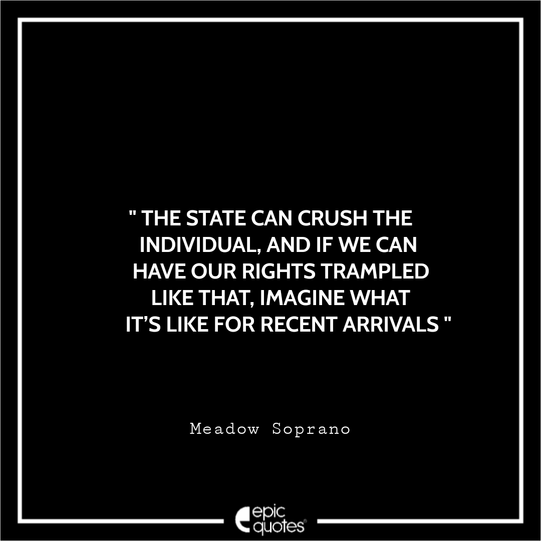 21. The state can crush the individual, And if we can have our rights trampled like that, imagine what it’s like for recent arrivals. -Meadow Soprano