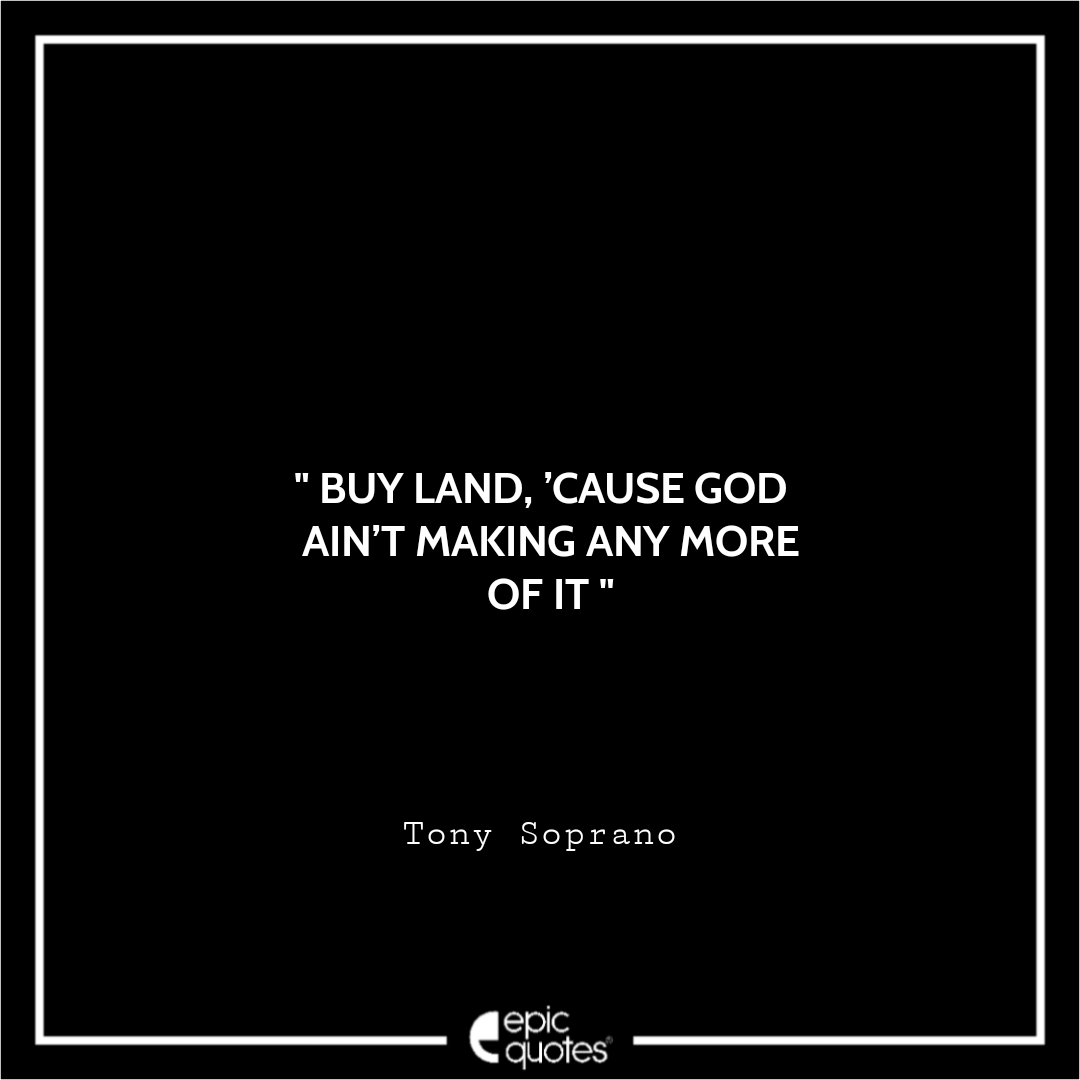 22 Buy land, ’cause God ain’t making any more of it. -Tony Soprano