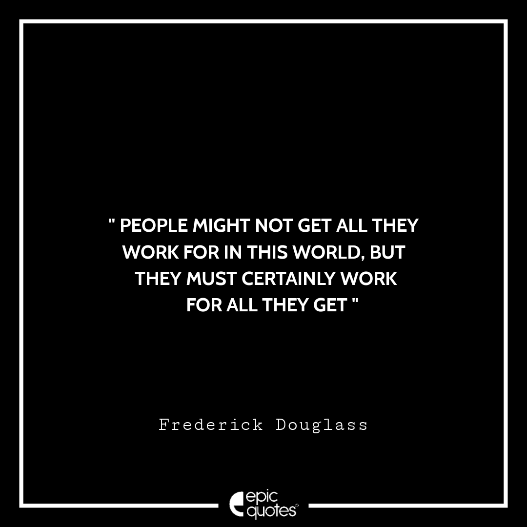 2. People might not get all they work for in this world, but they must certainly work for all they get. -Frederick Douglass