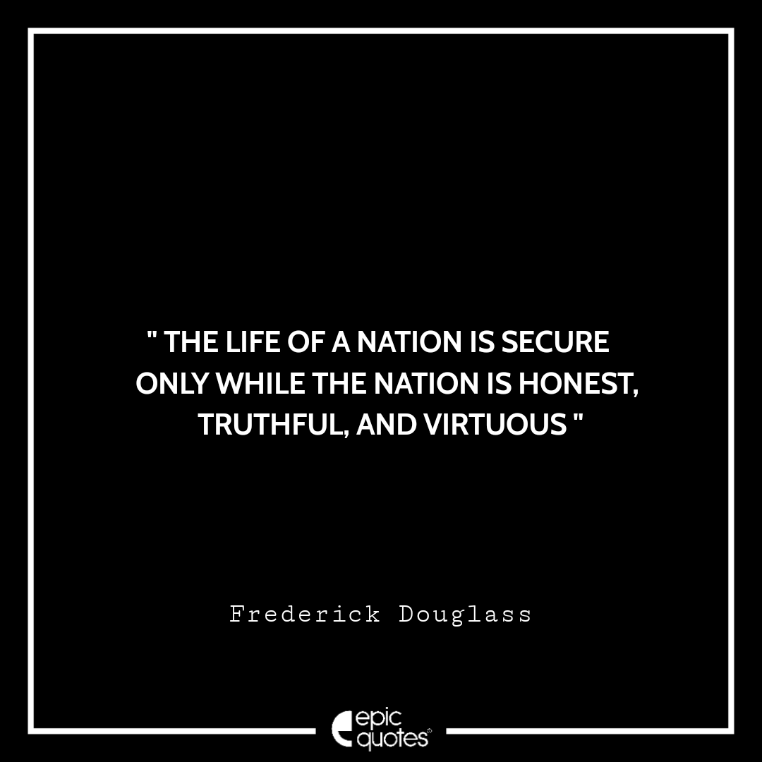 The life of a nation is secure only while the nation is honest, truthful, and virtuous. -Frederick Douglass