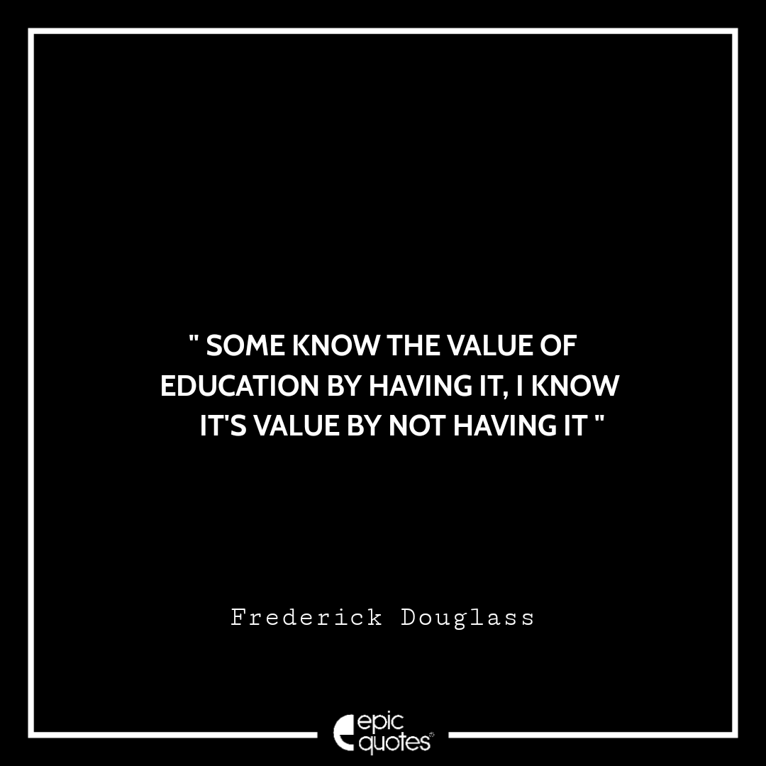 Some know the value of education by having it. I know it's value by not having it. -Frederick Douglass