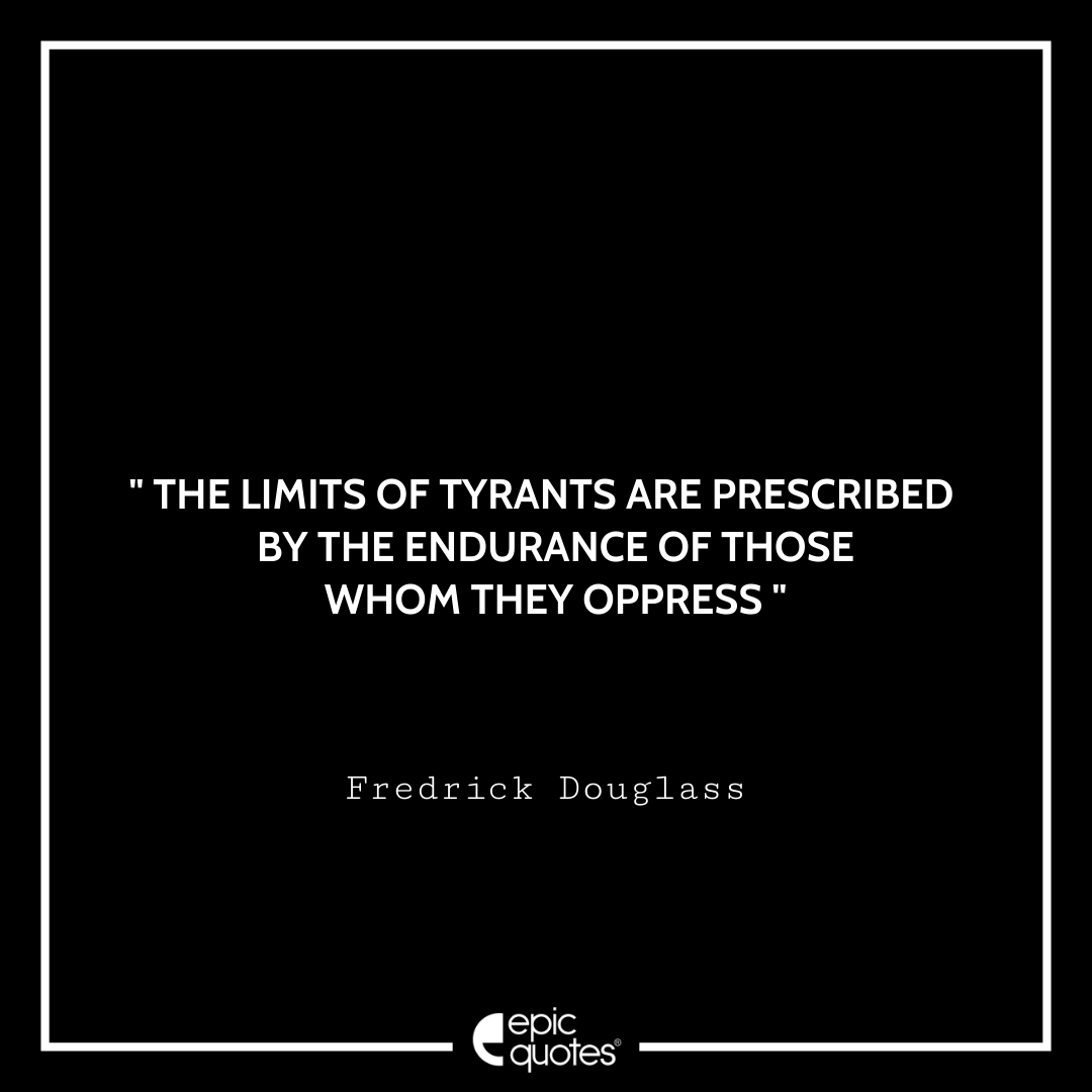 18 . The limits of tyrants are prescribed by the endurance of those whom they oppress. -Fredrick Douglass