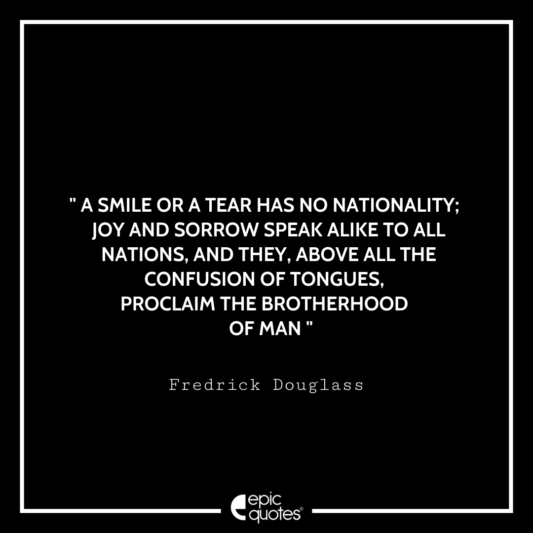 22. A smile or a tear has no nationality; joy and sorrow speak alike to all nations, and they, above all the confusion of tongues, proclaim the brotherhood of man. -Fredrick Douglass