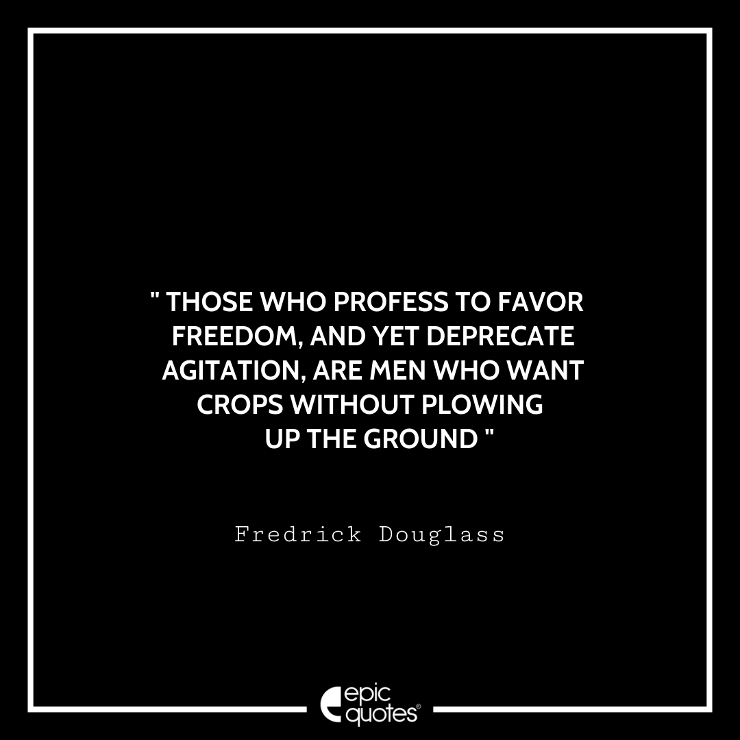 24 . Those who profess to favor freedom, and yet deprecate agitation, are men who want crops without plowing up the ground. -Fredrick Douglass