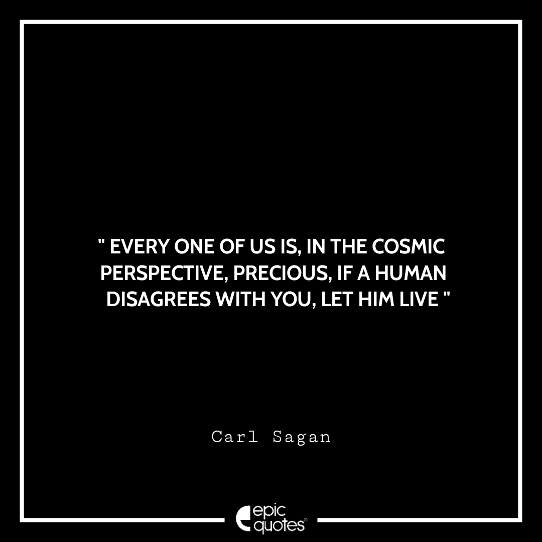 2 Every one of us is, in the cosmic perspective, precious. If a human disagrees with you, let him live. – Carl Sagan
